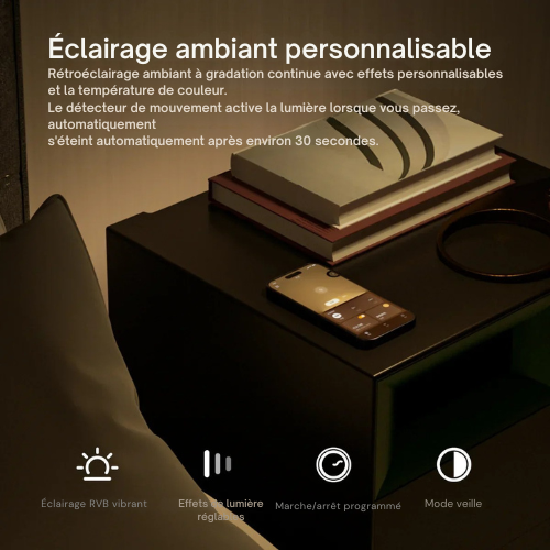 Ces enceintes de chevet réinventent la table de nuit en combinant harmonieusement son, éclairage, rangement et fonctionnalités intelligentes. Conçues comme un meuble fonctionnel et un élément décoratif à part entière, elles transforment la chambre en un espace de calme, de confort et d’élégance contemporaine.