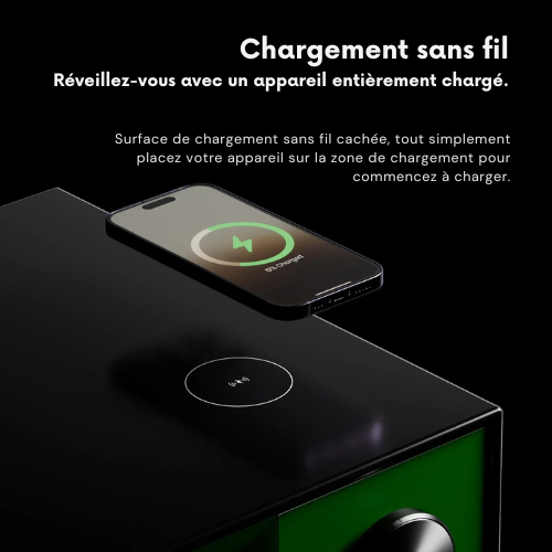 Rechargez vos appareils sans effort grâce à la surface de recharge sans fil dissimulée. Il suffit de poser votre téléphone sur la zone dédiée, sans câble ni encombrement.