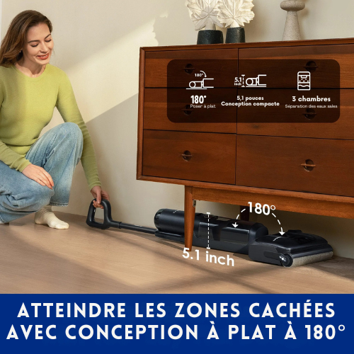 • Design inclinable à 180° pour un nettoyage facile sous les meubles