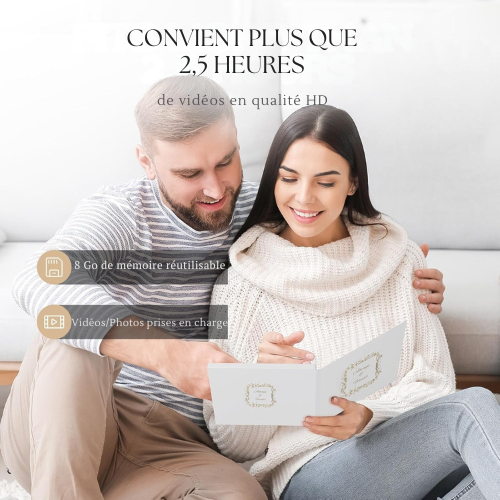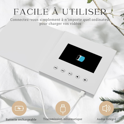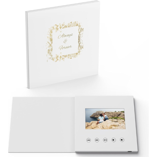 Le FrameaLove™ transforme vos plus beaux souvenirs en instants vivants. Parfait pour un mariage, un anniversaire, la fête des mères ou tout moment d’émotion, ce livre vidéo élégant intègre un écran LCD de 4,3 pouces et une mémoire interne de 8 Go, permettant de précharger jusqu’à 5 heures de vidéos personnalisées. Une façon moderne et poétique de dire “Je t’aime”, “Merci” ou “Toujours & Pour Toujours”.