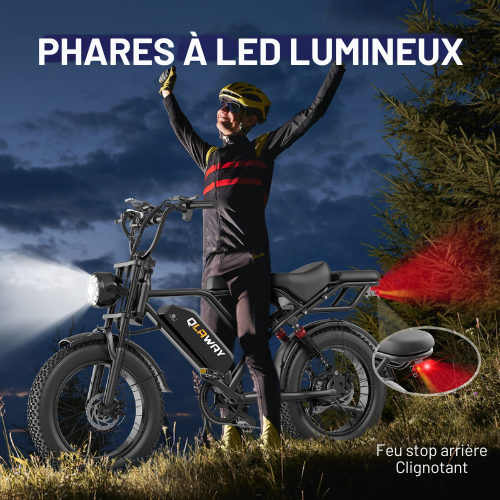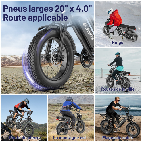 - Pneus : 20 × 4.0 pouces tout-terrain