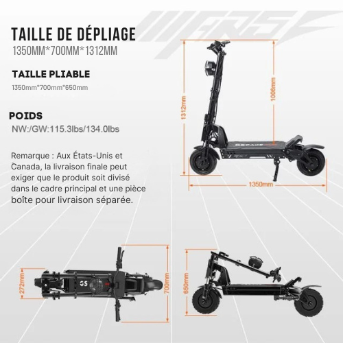 - Pneus : 11" ou 12" tout-terrain
