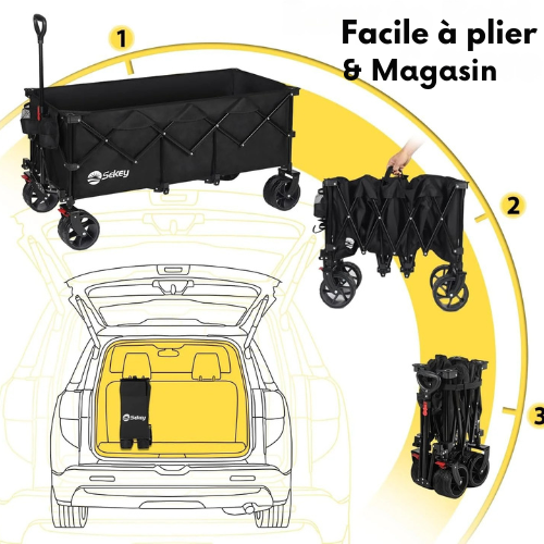 Découvrez le HaulMaster™ 48” Chariot Pliable — votre compagnon tout-terrain idéal pour les sorties en plein air, les voyages et les escapades en famille. Conçu pour offrir un maximum de capacité et de praticité, il allie robustesse industrielle et portabilité compacte. Que vous alliez à la plage, au camping, au marché ou au terrain de sport, ce chariot pliant supporte toutes les charges avec aisance et élégance.
