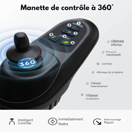 - Commande par joystick à 360° pour une navigation précise