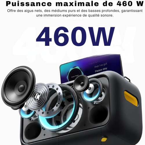 Grâce à ses deux tweeters de 2,6" et son haut-parleur grave de 6,5", combinés à un traitement DSP avancé, SonicStage™ garantit des voix claires, des basses profondes et un équilibre sonore parfait, même à volume élevé. Avec une puissance de 460W Peak, il remplit sans difficulté un grand salon ou un espace extérieur.