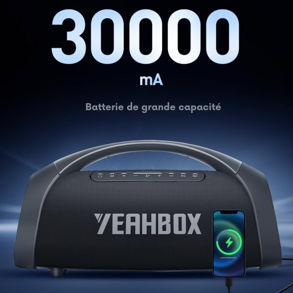 Sa batterie lithium 30 000 mAh offre plusieurs heures de lecture continue, même à volume élevé. Grâce à la technologie de charge rapide, vous reprenez votre musique en un rien de temps — où que vous soyez.